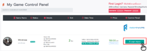 8.ระบบจะพามายังหน้าจัดการ Game Server ให้ทำการกด Login เพื่อเข้าดำเนินการต่อ