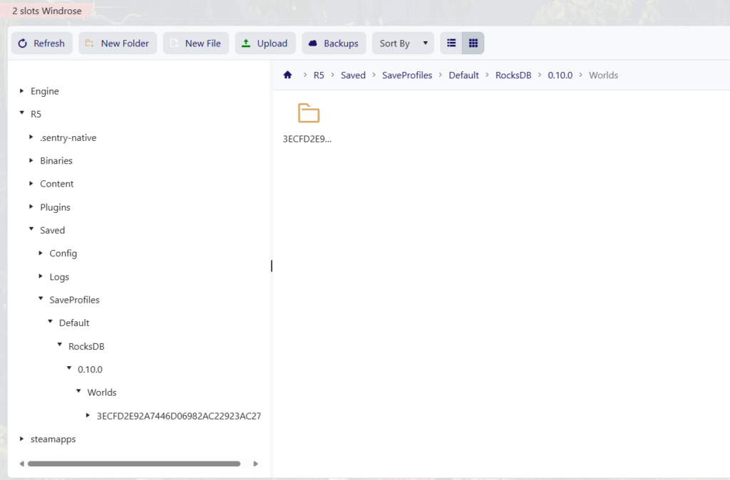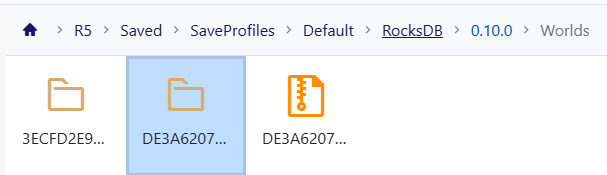 3.เข้าไปที่ R5 > Saved > SaveProfiles > Default > RocksDB > [Game version] > Worlds