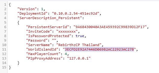 จะปรากฏหน้าตั้งค่า ในส่วนของ WorldIslandId ให้ทำการแก้เป็น World ID ที่เราได้ทำการ Copy เอาไว้