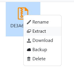 5. จะปรากฏไฟล์ .zip ที่เราทำการ Upload ลงไปและทำการคลิกขวาที่ .zip > คลิก “Extract” เพื่อแตกไฟล์